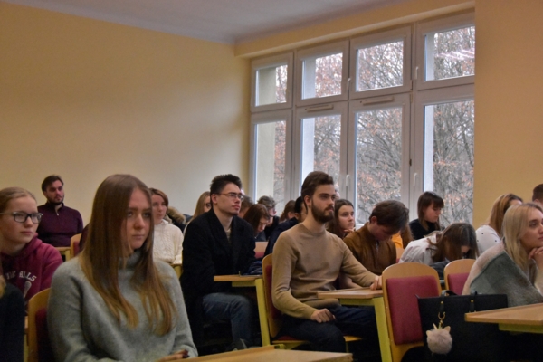 12 grudnia 2019 r. w Instytucie Prawa i Administracji odbyło się spotkanie z wiceprezesem Sądu Apelacyjnego w Gdańsku SSO Rafałem Rysiem - prawnikiem, specjalistą z zakresu prawa karnego, pełnomocnikiem Koordynatora Krajowego ds. informatyzacji sądów powszechnych, członkiem komisji egzaminacyjnych (aplikacja adwokacka, aplikacja radcowska). Nasz Gość wystąpił z prelekcją zatytułowaną "Prawo i co dalej? Perspektywy i kariera", przedstawiając słuchaczom wachlarz możliwości rozwoju zawodowego oraz specyfikę poszczególnych profesji prawniczych. Wykład cieszył się sporym zainteresowaniem nie tylko wśród studentów naszej Uczelni, ale również słupskich licealistów.